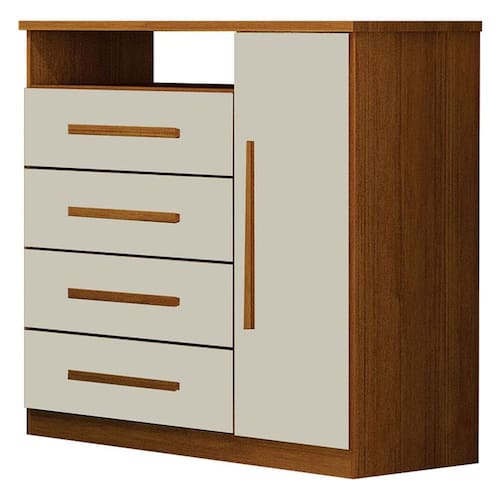 Cômoda Diamante 4 Gavetas 1 Porta Cinamomo Off White – Leifer Móveis