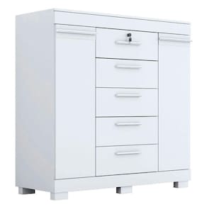Cômoda Diana Com 5 Gavetas Com Chave Acp Móveis Branco Apresentamos a Comoda Diana com 05 Gavetas com Chave da ACP Moveis. Com estrutura em MDF, ela possui puxadores ergonomicos, conta com 5 gavetas, 2 portas e 4 prateleiras, sendo que todos esses compartimentos possui o espaco interno amplo que ira surpreender voce! Possui corredicas metalicas nas gavetas, oferecendo a voce uma abertura muito mais eficiente. Caracteristicas: Marca: ACP Moveis Modelo: Diana Material: MDF Quantidade de Prateleiras: 4 Quantidade de Portas: 2 Quantidade de Gavetas: 5 Corredicas metalicas: Sim Com Pes: Sim Amplo espaco interno Puxadores Ergonomicos 1 Chave na primeira gaveta