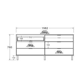 - Gaveta suporta até 5 kg cada.
