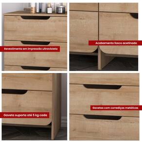 A Cômoda Ditália de 6 Gavetas é a escolha perfeita para aprimorar a estética e a organização do seu quarto. Seu design elegante acrescenta um toque de sofisticação ao ambiente, ao passo que suas gavetas cuidadosamente projetadas proporcionam praticidade e ordem ao espaço, tornando conveniente a acomodação de objetos pequenos e médios.