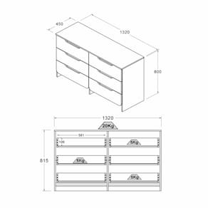 - Gaveta suporta até 5 kg cada.