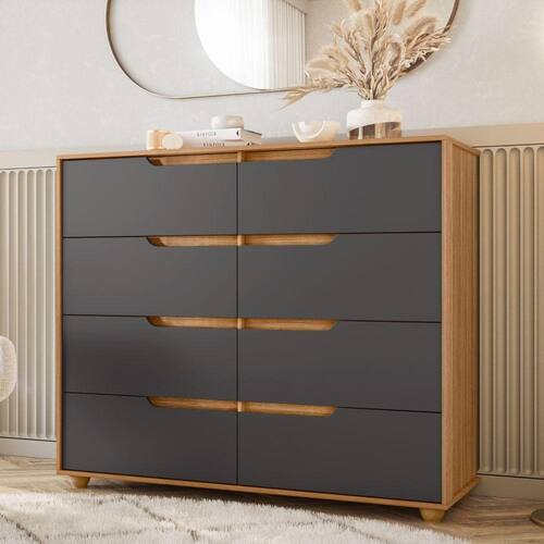 A Cômoda Doble é para ambientes para você que procura uma decoração aconchegante. Toda em estrutura reta, com puxadores retrô, um luxo! Se encaixa perfeitamente no quarto casal ou solteiro, com muito espaço interno para guardar as roupas e pequenos objetos. Com 6 gavetas grandes, sendo 2 menores, corrediças telescópicas e travas de sustentação para as gavetas maiores. Toda estrutura em MDP, caixa e frentes em 15 mm, puxadores em ABS e parte interna 100% na cor do produto.