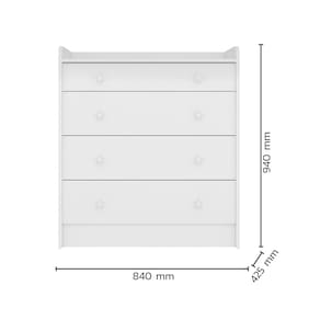 Características: Marca: Qmovi Modelo: Doce Sonho Material: MDP 15 Acabamento: Pintura UV Escala de Brilho: Brilho/ Toq Fosco Tipo de Puxador: Estrela em poliestireno Quantidade de Gavetas: 04 Peso suportado: 35Kg (Distribuídos e sem impacto) Peso suportado gavetas: 5Kg (Distribuídos e sem impacto) Peso suportado tampo: 15Kg (Distribuídos e sem impacto)