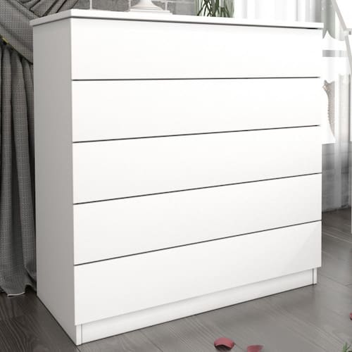 O(a) Cômoda Dona Premium 5 Gavetas Neve - Pnr Móveis é produzido em MDP na escala de brilho Semi-Brilho, e possui um grau de dificuldade de montagem: Médio.
