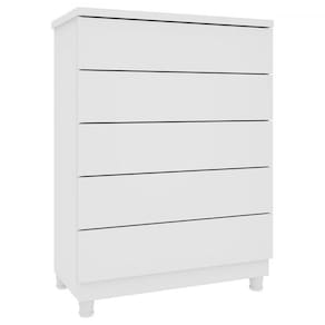 O(a) Cômoda Dona Premium 5 Gavetas Neve - Pnr Móveis é produzido em MDF na escala de brilho Fosco, e possui um grau de dificuldade de montagem: Médio.