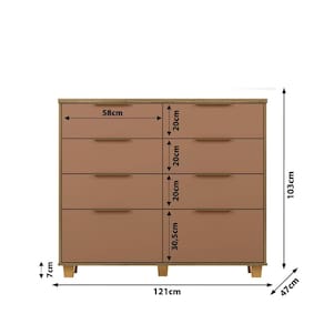 final de requinte além de serem altamente duráveis. Produto Montado: Sim Acabamento da Gaveta: Pintura UV Acabamento dos Pés: Pintura Altura dos Pés: 7 cm Altura Máxima dos Pés: 7.0000 Ambiente Principal: Quarto codigo_ean: 7900288344212 Complexidade da Montagem: Baixa: pode ser montado por uma pessoa sozinha Cor: Marrom/Camarim Cor do Produto: Marrom/Camarim Cor Flex: Não Cor Interna: Marrom/Camarim Escala de Brilho: Fosco Escala de Brilho da Gaveta: Fosco Gaveta com Chave: Não Itens Inclusos: 1 Cômoda, Kit Ferragens e Manual de Montagem Linha ou Coleção: Dubai Manual de Especificação Técnica: https://product-hub-prd.madeiramadeira.com.br/506007633/documents/e574c3df-0592-4795-8e37-fbee1a11ae9e3420596643717722200852603.pdf Manual de Montagem e Instalação: https://product-hub-prd.madeiramadeira.com.br/506007633/documents/c83c3293-b491-4778-a9c1-8e75cabdf07a3420595643717722200749061.pdf Marca: Vila Rica Material da Gaveta: MDF Material do Fundo: MDF Material do Puxador da Gaveta: Alumínio Material dos Pés: Plástico Material Principal: MDF Montagem Flex: Não Necessita Montagem: Sim Origem do Produto: Nacional Pés Reguláveis: Não Peso: 60,5 kg Peso Máximo por Gaveta: 3 kg Possui Espelho: Não Possui Nichos: Não Possui Pés: 06 Possui Portas: Não Possui Prateleiras: Não Possui Rodízio: Não Quantidade de Gavetas: 08 Gavetas Recomendações de Uso, Manutenção e Limpeza: Utilizar pano levemente umedecido, seguido de pano seco. Não utilizar quaisquer produtos abrasivos. Sapatas Niveladoras: Não Sistema de Montagem: Parafuso com porca cilíndrica, parafusos e cavilhas. Suporta Até (kg): 30 kg Tipo de Cômoda: Adulto Tipo de Corrediça da Gaveta: Metálica Telescópica Tipo de Puxador da Gaveta: Externo Marca: Não Informado