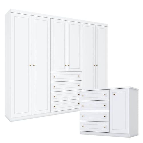 Cômoda e Guarda Roupa Casal 6 Portas Mississipi Branco HP – Henn