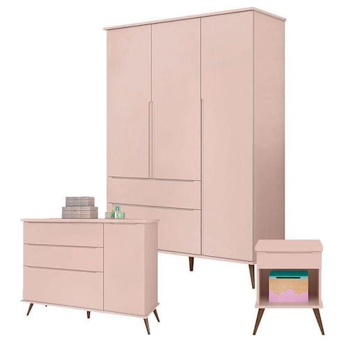 Cômoda e Guarda Roupa com Mesa de Apoio Alice Rosa Acetinado - Phoenix baby