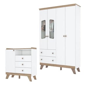 Cômoda e Guarda Roupa Infantil Confete Branco Brilho Jequitibá HP - Henn