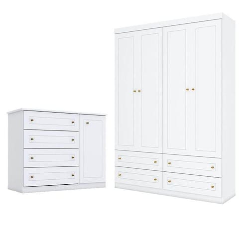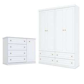 Cômoda e Guarda Roupa Infantil Mississipi 4 Portas Branco - Henn