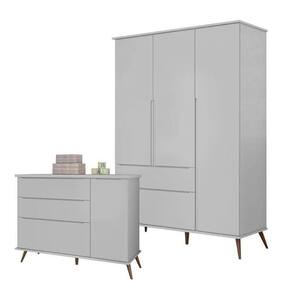 Cômoda e Guarda Roupa Infantil Retro Alice Cinza Acetinado - Phoenix Baby
