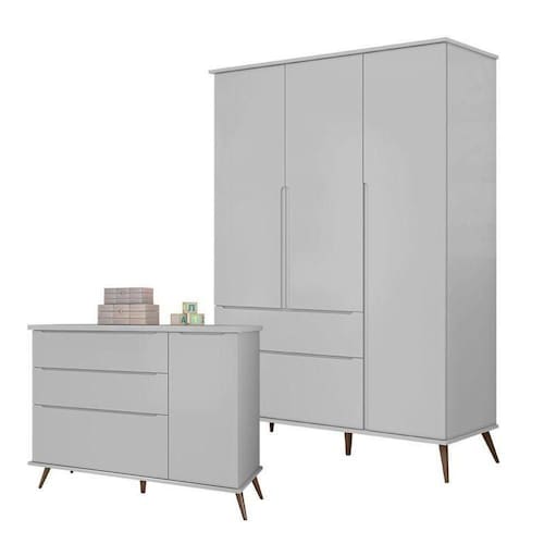 A cômoda e o Guarda Roupa infantil para quarto do bebê modelo retro com qualidade, lindo design e bom preço você encontra aqui, apresentamos mais uma linda opção Cômoda e Guarda Roupa Infantil Retro Alice Cinza Acetinado com pés amadeirados, com amplo espaço você vai deixar todas as roupas e acessórios do seu bebê organizados com total conforto e comodidade confira!
