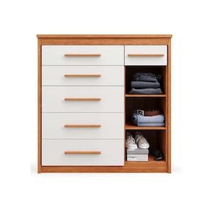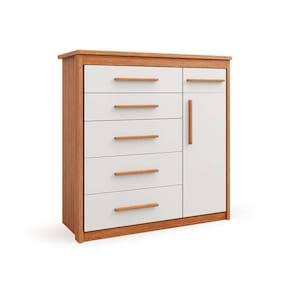 que tal a cômoda elegance? para complementar o quarto e ter uma boa ajuda na hora de organizar o vestuário, pode contar coômoda elegance! com 1 porta e 6 gavetas, ela favorece sua organização no dia a dia, acomodando peças que podem ser dobradas, desde camisetas e calças até as meias - ou você também pode usar uma gaveta para cabos e itens eletrônicos. feita em material resistente, a peça tem ótima durabilidade e design clean que torna fácil harmonizá-la com o restante dos móveis no seu cantinho de descanso. tudo de bom, né? Marca: Modern
