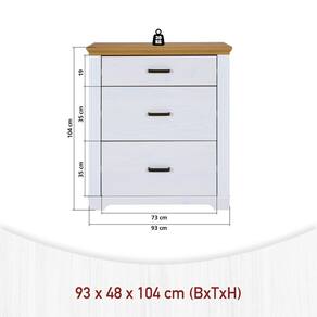 Com 3 gavetas espaçosas, corrediças Soft Close, é perfeita para organizar roupas, acessórios e objetos pessoais, mantendo o ambiente sempre em ordem. O acabamento em Branco lavado realça os veios da madeira e um toque contemporâneo que combina com diversos estilos de decoração.