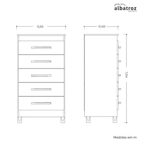 Cômoda Esmeralda 5 Gavetas - Móveis Albatroz A Cômoda Esmeralda 5 Gavetas é uma solução prática e elegante para organizar o seu ambiente. Com estrutura em MDP e pintura UV, ela oferece durabilidade e um acabamento impecável. Suas 5 gavetas com corrediças metálicas garantem um deslizamento suave, proporcionando fácil acesso aos seus pertences. Os puxadores e pés em ABS completam o design moderno e resistente. Ideal para otimizar espaço e trazer mais funcionalidade ao seu quarto, a Cômoda Esmeralda combina qualidade e estilo, sendo perfeita para qualquer decoração. Atualize seu ambiente com este móvel versátil e aproveite o máximo de organização e beleza.