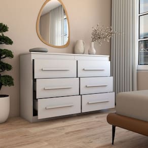 O(a) Cômoda Europa 6 Gavetas 100% Mdf Branco - Loja é produzido em 100% MDF na escala de brilho Semi-Brilho, e possui um grau de dificuldade de montagem: Médio.