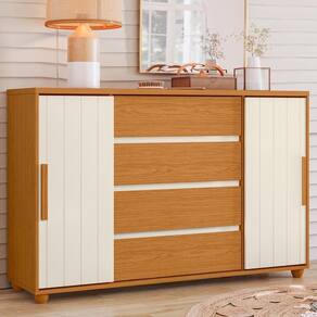 Quantidade de Gavetas: 4 | Produto: Cômodas | Tonalidade: Multicolorido | Fabricante: Móveis Albatroz Cor: Cinamomo/Off White