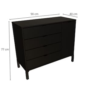 *Móvel produzido com madeira de reflorestamento. Acabamento da Gaveta: BP Acabamento da Porta: BP Acabamento da Prateleira: BP Acabamento dos Pés: Polipropileno Altura dos Pés: 13.5 Ambiente Principal: Quarto Complexidade da Montagem: Média: pode ser montado por mais de uma pessoa e/ou necessite de maior conhecimento para montagem Cor: Preto Cor do Produto: Preto Cor Interna: Branco Escala de Brilho: Fosco Escala de Brilho da Gaveta: Fosco Escala de Brilho da Porta: Fosco Escala de Brilho da Prateleira: Fosco Gaveta com Chave: Não Informações Complementares: Material (composição): Chapas em MDP de 15mm, revestido com laminado melamínico baixa pressão (BP) fosco. Possui traços retos e pés e puxadores em conceito industrial. Importante: o BP é um tipo de revestimento tratado com tecnologias específicas para dar Itens Inclusos: 1 Cômoda, 1 Kit Ferragens e 1 Manual de Montagem Linha ou Coleção: Timeless Manual de Montagem e Instalação: https://cdn2.madeiramadeira.com.br/atributo/falkk/1505482-fkex-902-comoda-ipamena-4gv.pdf Material da Gaveta: MDP Material da Porta: MDP Material da Prateleira: MDP Material do Fundo: Triplac Material do Puxador da Gaveta: Metal Material do Puxador da Porta: Metal Material dos Pés: Polipropileno Material Principal: MDP Necessita Montagem: Sim Origem do Produto: Nacional Pés Reguláveis: Não Peso: 30.64 Peso Máximo por Gaveta: 6 Peso Máximo por Prateleira: 5 Possui Espelho: Não Possui Nichos: 01 Possui Pés: 04 Possui Portas: Sim Possui Prateleiras: Sim Possui Rodízio: Não Quantidade de Gavetas: 04 Gavetas Quantidade de Prateleiras: 01 Prateleira Recomendações de Uso, Manutenção e Limpeza: Utilizar um pano macio umedecido com água e sabão neutro, seguido de pano seco. Não utilize produtos químicos ou abrasivos para limpeza, pois estes danificam o revestimento do móvel. Sapatas Niveladoras: Não Sistema de Montagem: Minifix, Parafuso e Cavilha. Suporta Até (kg): 45 Tipo de Corrediça da Gaveta: Metálica Simples Tipo de Dobradiça/Corrediça da Porta: Metálica Tipo de Porta: Bater Tipo de Puxador da Gaveta: Externo Tipo de Puxador da Porta: Externo Ean: 7909903408872