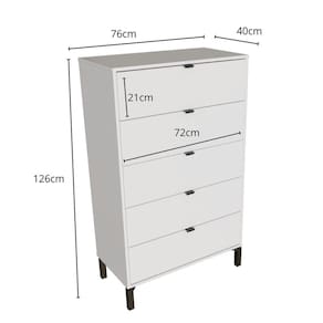 A cômoda Queens possui um visual dinâmico com 5 gavetas altas, adaptando-se para armazenar diversos itens da rotina. Com ótimo espaço de armazenamento e design marcante, ela se destaca em diversos projetos.