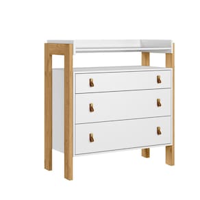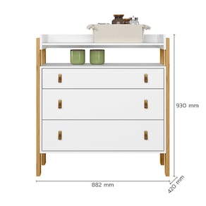 Com design diferenciado e puxadores inspirados no couro, a Comoda 3 Gavetas com Nicho torna o ambiente moderno e divertido.