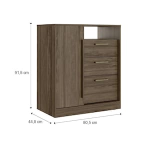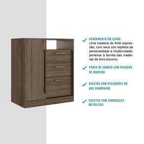 A Cômoda Carraro é uma peça versátil que combina com diferentes espaços e decorações. Possui porta de correr com acabamento em alto brilho, que protege contra riscos e garante alta resistência. Sua última gaveta conta com espaço para guardar peças de maior volume.Especificações do Produto:Medidas: Largura: 80,5cm | Altura: 91,8 cm | Profundidade: 44,8 cmPeso: 30 KgMatéria Prima: MDPPortas: 1 porta de correrSistema Abertura: CorrediçasPuxador: Madeira (porta) e ABS (gavetas)Gavetas: 3 externasCorrediças: MetálicasPrateleiras: 1