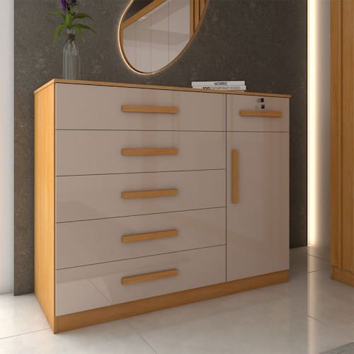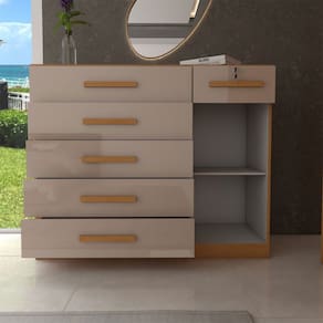 O(a) Cômoda Fleur 1 Porta 6 Gavetas Cinamomo/Off White - Loja é produzido em MDP na escala de brilho Fosco, e possui um grau de dificuldade de montagem: Médio.