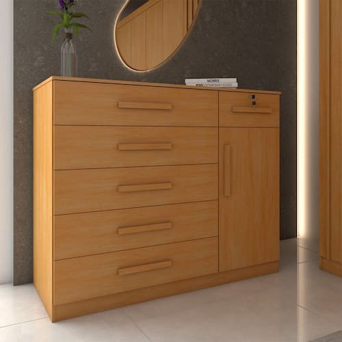 O(a) Cômoda Fleur 1 Porta 6 Gavetas Cinamomo - Loja é produzido em MDP na escala de brilho Fosco, e possui um grau de dificuldade de montagem: Médio.