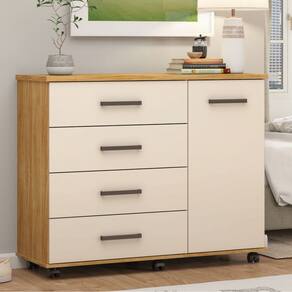 O(a) Cômoda Flora 1 Porta 4 Gavetas Cinamon/Off-White - Demóbile é produzido em MDP na escala de brilho Brilho e Fosca com Textura, e possui um grau de dificuldade de montagem: Médio.