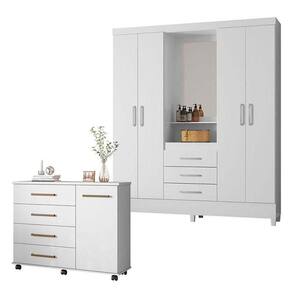 Cômoda Flora e Guarda Roupa Casal Capelinha Pérsia Branco - Demóbile