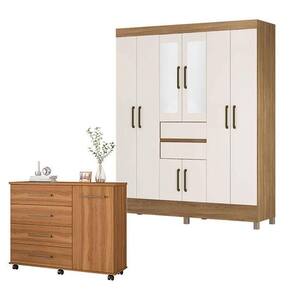 Cômoda Flora e Guarda Roupa Casal Munique Amêndola Off White com Espelho - Demóbile