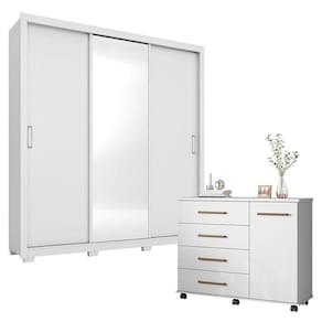 Cômoda Flora e Guarda Roupa Casal Residence Branco com Pés - Demóbile