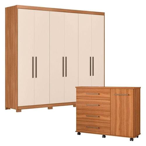Cômoda Flora e Guarda Roupa Casal Venice 62480PE Amendola Touch Off White com Pés - Demóbile