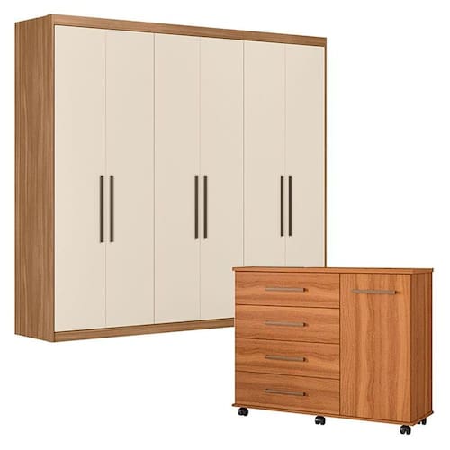 Cômoda Flora e Guarda Roupa Casal Venice 62780 Amendola Touch Off White - Demóbile