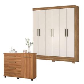 Cômoda Flora e Guarda Roupa Casal Verso Amêndola Off White - Demóbile