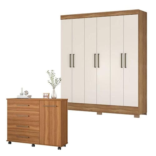 Organização, praticidade e modernidade são requisitos que a Cômoda Flora e o Guarda Roupa Casal Verso proporcionará em seu ambiente, pois foram desenvolvidos com estrutura em MDP, design sofisticado e amplo espaço interno com gavetas, prateleiras e cabideiros, aproveite!