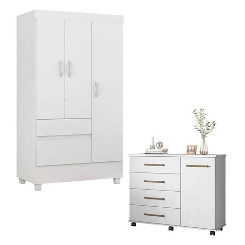 Cômoda Flora e Guarda Roupa Solteiro Branco - Demóbile