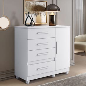A COMODA FLORENÇA COM SEU LINDO DESING TRAS CHARME E ELEGANCIA A QUALQUER ESPAÇO, CONTEM 1 PORTA E 1 PRATELEIRA PARA ACOMODAR SEUS ACESSORIOS , ALEM DE POSSUIR 4 GAVETAS COM CORREDIÇA TELESCOPICA QUE PROPORCIONA UMA MAIOR SUAVIDADE EM SEU USO,
