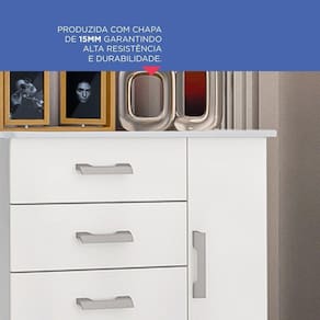 Ela é equipada com sapateira, que pode ser utilizado tanto para comportar seus calçados, como demais acessórios. Produto Montado: Sim Acabamento da Gaveta: Pintura UV Acabamento da Porta: Pintura UV Acabamento da Prateleira: Pintura Ambiente Principal: Quarto codigo_ean: 7909903441251 Complexidade da Montagem: Baixa: pode ser montado por uma pessoa sozinha Cor: Branco Cor do Produto: Branco Escala de Brilho: Brilhante Escala de Brilho da Porta: Brilhante Escala de Brilho da Prateleira: Brilhante Gaveta com Chave: Não Itens Inclusos: 1 Cômoda, Kit Ferragens e Manual de Montagem Manual de Montagem e Instalação: https://product-hub-prd.madeiramadeira.com.br/872486/documents/fe92e470-faeb-444a-b7c0-5708b3ce1a801551900comodafirenze.pdf Material da Gaveta: MDF/MDP Material da Porta: MDF Material da Prateleira: MDP Material do Fundo: MDF Material Principal: MDF Necessita Montagem: Sim Origem do Produto: Nacional Peso: 432 kg Peso Máximo por Gaveta: 5 kg Possui Espelho: Não Possui Nichos: Não Possui Pés: Não Possui Portas: Sim Possui Prateleiras: Sim Quantidade de Gavetas: 04 Gavetas Quantidade de Prateleiras: 01 Prateleira Recomendações de Uso, Manutenção e Limpeza: Pano levemente umedecido e depois passar umpano seco. Não utilizar produtos de limpeza abrasivos, nem esponjas de aço. Sapatas Niveladoras: Não Sistema de Montagem: Parafusos, Cavilhas Tipo de Corrediça da Gaveta: Metálica Telescópica Tipo de Dobradiça/Corrediça da Porta: Pressão Tipo de Porta: Bater Tipo de Puxador da Gaveta: Externo Tipo de Puxador da Porta: Externo Ean: 7909903441251