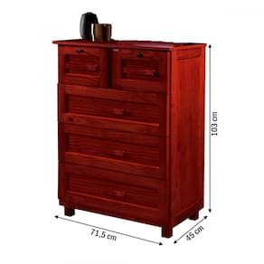 O(a) Cômoda Floripa Madeira Maciça 5 Gavetas Marrom - Pnr Móveis é produzido em Pinus e HDF na escala de brilho Fosco, e possui um grau de dificuldade de montagem: Médio.