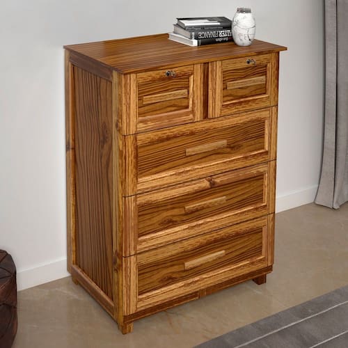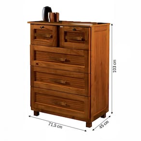 O(a) Cômoda Floripa Madeira Maciça 5 Gavetas Ypê - Pnr Móveis é produzido em Pinus e HDF na escala de brilho Fosco, e possui um grau de dificuldade de montagem: Médio.