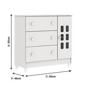A Cômoda Fraldário te ajuda a manter a organização nesse cômodo tão importante, graças à porta e às 3 gavetas que recebem roupinhas e produtos de higiene - além disso, é cheia de benefícios, como o fraldário para facilitar o dia a dia e as travas de segurança nas gavetas. Para completar o combo perfeito, a peça tem design clean que combinará facilmente com o restante da paleta escolhida para montar um dormitório aconchegante e cheio de charme! Produto Montado: Sim Acabamento da Gaveta: Pintura Acabamento da Porta: Pintura Acabamento da Prateleira: Pintura Altura dos Pés: 12 Altura Máxima dos Pés: 12.0000 Ambiente Principal: Quarto Infantil codigo_ean: 7898441951288 Complexidade da Montagem: Média: pode ser montado por mais de uma pessoa e/ou necessite de maior conhecimento para montagem Cor: Branco Brilho Cor do Produto: Branco Brilho Escala de Brilho: Brilhante Escala de Brilho da Porta: Brilhante Escala de Brilho da Prateleira: Semi-Brilho Gaveta com Chave: Não Itens Inclusos: 1 Cômoda, Kit Ferragens e Manual de montagem Manual de Montagem e Instalação: https://product-hub-prd.madeiramadeira.com.br/879645/documents/71997f2f-35ef-4fa2-9daa-90eeb1e6f223464969cb016cOmodafraldArio.pdf Material da Gaveta: MDF/MDP Material da Porta: MDF/MDP Material da Prateleira: MDF/MDP Material do Fundo: HDF Material dos Pés: PVC Material Principal: MDF/MDP modular: Sim Necessita Montagem: Sim Origem do Produto: Nacional Peso: 28,5 kg Peso Máximo por Gaveta: 3 kg Peso Máximo por Prateleira: 5 kg Possui Espelho: Não Possui Nichos: Não Possui Pés: 04 Possui Portas: Sim Possui Prateleiras: Sim Possui Rodízio: Não Recomendações de Uso, Manutenção e Limpeza: Limpar com pano seco ou úmido, sem uso de produtos quimicos Sapatas Niveladoras: Não Sistema de Montagem: Parafusos e Cavilhas Suporta Até (kg): 24 kg Tipo de Corrediça da Gaveta: Metálica Tipo de Dobradiça/Corrediça da Porta: Metálica Tipo de Porta: Bater Tipo de Puxador da Gaveta: Externo Tipo de Puxador da Porta: Externo