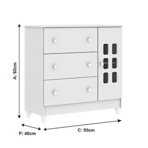 A Cômoda Fraldário te ajuda a manter a organização nesse cômodo tão importante, graças à porta e às 3 gavetas que recebem roupinhas e produtos de higiene - além disso, é cheia de benefícios, como o fraldário para facilitar o dia a dia e as travas de segurança nas gavetas. Para completar o combo perfeito, a peça tem design clean que combinará facilmente com o restante da paleta escolhida para montar um dormitório aconchegante e cheio de charme!
