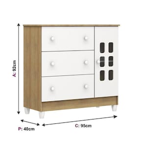 A Cômoda Fraldário te ajuda a manter a organização nesse cômodo tão importante, graças à porta e às 3 gavetas que recebem roupinhas e produtos de higiene - além disso, é cheia de benefícios, como o fraldário para facilitar o dia a dia e as travas de segurança nas gavetas. Para completar o combo perfeito, a peça tem design clean que combinará facilmente com o restante da paleta escolhida para montar um dormitório aconchegante e cheio de charme! Produto Montado: Sim Acabamento da Gaveta: Pintura Acabamento da Porta: Pintura Acabamento da Prateleira: Pintura Altura dos Pés: 12 Altura Máxima dos Pés: 12.0000 Ambiente Principal: Quarto Infantil codigo_ean: 7898441951356 Complexidade da Montagem: Média: pode ser montado por mais de uma pessoa e/ou necessite de maior conhecimento para montagem Cor: Branco Fosco/Amadeirado Cor do Produto: Branco Fosco/Amadeirado Escala de Brilho: Fosco Escala de Brilho da Porta: Brilhante Escala de Brilho da Prateleira: Semi-Brilho Gaveta com Chave: Não Itens Inclusos: 1 Cômoda, Kit Ferragens e Manual de montagem Manual de Montagem e Instalação: https://product-hub-prd.madeiramadeira.com.br/879650/documents/a85aa2c5-98f7-4afd-bd7a-42eaf65eefc4464969cb016cOmodafraldArio.pdf Material da Gaveta: MDF/MDP Material da Porta: MDF/MDP Material da Prateleira: MDF/MDP Material do Fundo: HDF Material dos Pés: PVC Material Principal: MDF/MDP modular: Sim Necessita Montagem: Sim Origem do Produto: Nacional Peso: 28,5 kg Peso Máximo por Gaveta: 3 kg Peso Máximo por Prateleira: 5 kg Possui Espelho: Não Possui Nichos: Não Possui Pés: 04 Possui Portas: Sim Possui Prateleiras: Sim Possui Rodízio: Não Recomendações de Uso, Manutenção e Limpeza: Limpar com pano seco ou úmido, sem uso de produtos quimicos Sapatas Niveladoras: Não Sistema de Montagem: Parafusos e Cavilhas Suporta Até (kg): 24 kg Tipo de Corrediça da Gaveta: Metálica Tipo de Dobradiça/Corrediça da Porta: Metálica Tipo de Porta: Bater Tipo de Puxador da Gaveta: Externo Tipo de Puxador da Porta: Externo