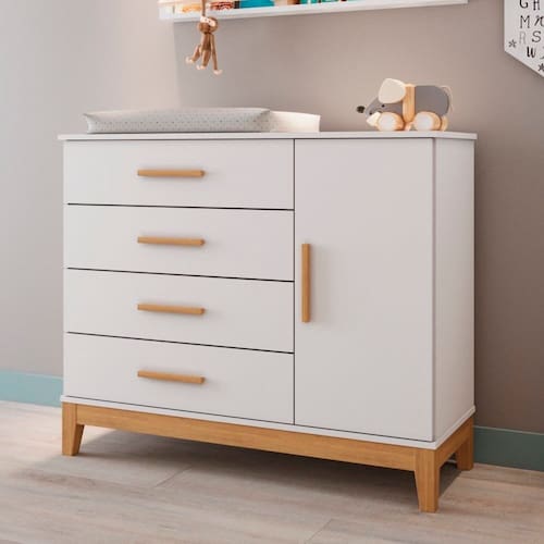 Gavetas espaçosas com fácil deslizamento Produto Montado: Sim Acabamento da Gaveta: Pintura UV Acabamento da Porta: Pintura UV Acabamento da Prateleira: Pintura UV Acompanha a Almofada: Não Altura dos Pés: 5 cm Altura Máxima dos Pés: 5.0000 Ambiente Principal: Quarto de Bebê codigo_ean: 7900288249876 Complexidade da Montagem: Baixa: pode ser montado por uma pessoa sozinha Cor: Branco/Bétula Cor do Produto: Branco/Betula Escala de Brilho: Fosco Escala de Brilho da Porta: Fosco Escala de Brilho da Prateleira: Fosco Gaveta com Chave: Não Itens Inclusos: 1 Comoda, Manual de Montagem e Kit Ferragem Manual de Montagem e Instalação: https://product-hub-prd.madeiramadeira.com.br/799604347/documents/c4ea1c53-9397-4a68-ae1f-202e2202ee6332579986401759438872752.pdf Marca: Carolina Baby Material da Gaveta: MDF Material da Porta: MDF Material da Prateleira: MDF Material do Fundo: mdf Material dos Pés: MDF Material Principal: MDF modular: Não Necessita Montagem: Sim Origem do Produto: Nacional Peso: 40,6 kg Peso Máximo por Gaveta: 20 kg Peso Máximo por Prateleira: 15 kg Possui Espelho: Não Possui Nichos: Não Possui Pés: 04 Possui Portas: Sim Possui Prateleiras: Sim Possui Rodízio: Não Possui Trocador: Sim Quantidade de Gavetas: 04 Gavetas Recomendações de Uso, Manutenção e Limpeza: Limpar com pano seco Sapatas Niveladoras: Não Sistema de Montagem: Parafuso Suporta Até (kg): 18 kg Tipo de Corrediça da Gaveta: Metálica Telescópica Tipo de Dobradiça/Corrediça da Porta: Metálica Tipo de Porta: Batente Tipo de Puxador da Gaveta: Externo Tipo de Puxador da Porta: Externo