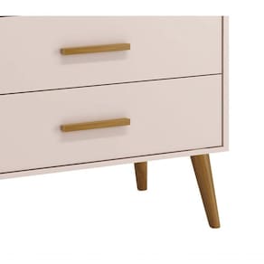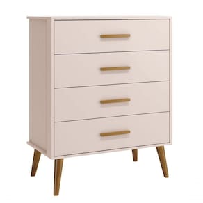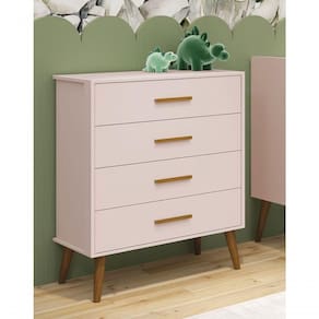 Cômoda Gaveteira Retrô Isis Rosa Fosco - Moveisaqui A Cômoda Gaveteira Retrô Isis - MóveisAqui, com design retrô devido ao modelo de seus pés em madeira maciça, entrega um desing clean que combina com vários estilos de decoração. É ótima para a organização das roupinhas e itens do seu bebê, possibilita um amplo espaço para armazenamento com suas quatro gavetas, de maneira que a organização do dia-a-dia possa ser mais fácil. E tem seus puxadores em MDF envelopado.Dimensões do Produto Montado:Altura: 97 cmLargura: 77 cmProfundidade: 41 cmObservações:- 04 gavetas;- Produzida em MDF;- Corrediças Telescópicas;- Puxadores em MDF;- Sistema anti Tombamento;- Pés na cor Madeira;- Pintura ultravioleta com acabamento fosco. Marca: Não Informado