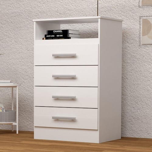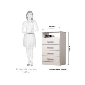Para você que está buscando um móvel compacto com estilo clássico, a Cômoda Jéssica é perfeita. Com estrutura em 100% MDF, oferece maior resistência e durabilidade. Muito versátil, ela pode ser usada também em outros cômodos além do quarto. Aproveite esse oportunidade agora. Produto Montado: Sim Acabamento da Gaveta: Pintura UV Acabamento dos Pés: Pintura Altura dos Pés: 10 Ambiente Principal: Quarto codigo_ean: 7909903255926 Complexidade da Montagem: Média: pode ser montado por mais de uma pessoa e/ou necessite de maior conhecimento para montagem Cor: Branco Cor do Produto: Branco Cor Interna: Branco Escala de Brilho: Brilhante Escala de Brilho da Gaveta: Brilhante Gaveta com Chave: Não Informações Complementares: Estrutura em MDF 12mm e fundo HDF 2,5mm. Peso máximo suportado de 30kg devem ser distribuídos de forma adequada e equilibrada. Itens Inclusos: 1 Cômoda, Kit Ferragens e Manual de Montagem Linha ou Coleção: Jéssica Manual de Montagem e Instalação: https://product-hub-prd.madeiramadeira.com.br/713008/documents/7e4b91b4-2871-4340-9693-36665f993a16887429comodajessicax.pdf Material da Gaveta: MDF Material do Fundo: HDF Material do Puxador da Gaveta: Plástico Material do Puxador da Porta: Cromado Material dos Pés: MDF Material Principal: MDF Necessita Montagem: Sim Origem do Produto: Nacional Pés Reguláveis: Não Peso: 21.5 Peso Máximo por Gaveta: 10 Possui Espelho: Não Possui Nichos: 1 Possui Pés: Rodapé Possui Portas: Não Possui Prateleiras: Não Possui Rodízio: Não Quantidade de Gavetas: 04 Gavetas Recomendações de Uso, Manutenção e Limpeza: Para limpar não use nenhum tipo de produto, tais como sabão, esponja de aço, álcool e lustra-móveis. Use somente uma flanela seca. Não molhe nem exponha o móvel à umidade ou a luz solar diretamente ou outra forma de calor. Não encoste o móvel na parede. Não o arreste. Se precisar mudar o móvel de lugar, esvazie por completo o móvel, não o arraste, com ajuda de outras pessoas suspenda o móvel de forma segura e o posicione no lugar desejado. Sapatas Niveladoras: Sim Sistema de Montagem: Parafusos, Minifix e Cavilhas. Suporta Até (kg): 30 Tipo de Corrediça da Gaveta: Plástica Tipo de Puxador da Gaveta: Externo Ean: 7909903255926
