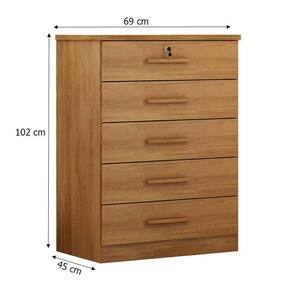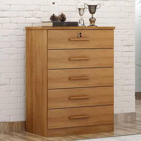 Esta precisando de uma cômoda? Apresentamos a linha Suiça, uma cômoda com 5 gavetas sendo uma delas equipada com chave para garantir mais aos seus pertences. Fabricada em MDP/MDF garantindo qualidade e resistência. Seus puxadores amadeirados agregam charme e sofisticação, tornando-a uma peça versátil para complementar a decoração do seu quarto com estilo e praticidade. Venha aproveitar e garantir já o seu!