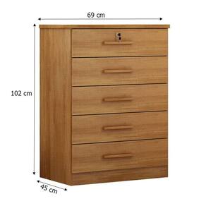 Esta precisando de uma cômoda? Apresentamos a linha Suiça, uma cômoda com 5 gavetas sendo uma delas equipada com chave para garantir mais segurança aos seus pertences. Fabricada em MDP/MDF garantindo qualidade e resistência. Seus puxadores amadeirados agregam charme e sofisticação, tornando-a uma peça versátil para complementar a decoração do seu quarto com estilo e praticidade. Venha aproveitar e garantir já o seu!