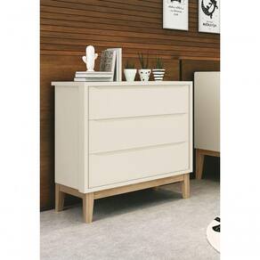 A Cômoda Gaveteiro Classic New - RELLER, com um ar retrô o modelo de seus pés em madeira maciça, um desing clean que combina com vários estilos de decoração. É ótima para a organização das roupinhas e itens do seu bebê, possibilita um amplo espaço para armazenamento com suas três gavetas, de maneira que a organização do dia-a-dia possa ser mais fácil. Possui puxadores embutidos, onde as aberturas ocorrem através de recortes no MDF que possibilitam o perfeito encaixe da mão para que possa abrir as portas e gavetas.