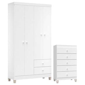 Cômoda Gaveteiro e Guarda Roupa 4 Portas Baby Kids Branco Flex – Incorplac